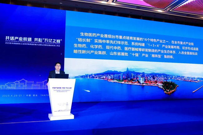 隨后,煙臺(tái)市市場(chǎng)監(jiān)督管理局總工程師張波圍繞煙臺(tái)生物醫(yī)藥產(chǎn)業(yè)發(fā)展態(tài)勢(shì)、細(xì)分賽道、重點(diǎn)項(xiàng)目、優(yōu)惠政策及投資環(huán)境等,向在場(chǎng)嘉賓進(jìn)行分享解讀,并期待與會(huì)的優(yōu)秀企業(yè)與投融資機(jī)構(gòu)來(lái)到煙臺(tái)投資興業(yè),共謀發(fā)展。煙臺(tái)依山傍海、氣侯溫和、產(chǎn)業(yè)發(fā)達(dá)、交通便利,擁有發(fā)展醫(yī)藥健康產(chǎn)業(yè)得天獨(dú)厚的優(yōu)勢(shì)。目前,煙臺(tái)全市擁有醫(yī)藥類企業(yè)147家,其中主營(yíng)業(yè)務(wù)收入過(guò)10億元的企業(yè)11家,過(guò)億元的60家,上市公司6家,獨(dú)角獸企業(yè)1家,瞪羚企業(yè)11家,省專精特新“小巨人”企業(yè)17家,單項(xiàng)冠軍企業(yè)8家,6家企業(yè)進(jìn)入國(guó)內(nèi)醫(yī)藥工業(yè)、商業(yè)領(lǐng)域百?gòu)?qiáng),連續(xù)三年產(chǎn)業(yè)全業(yè)態(tài)主營(yíng)業(yè)務(wù)收入突破千億元。