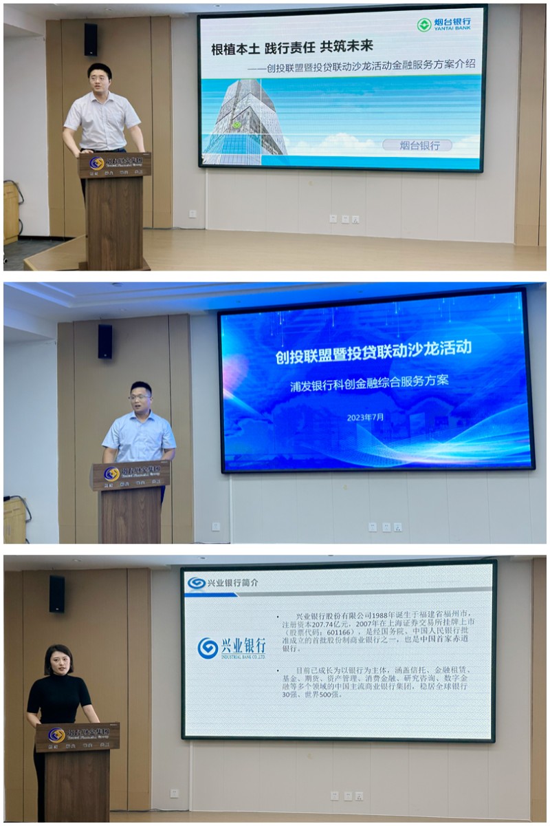隨后,煙臺銀行、興業(yè)銀行、浦發(fā)銀行分別根據(jù)自身優(yōu)勢介紹了特色金融服務(wù)產(chǎn)品。各與會銀行表示,“投貸聯(lián)動”機制與銀行支持新興產(chǎn)業(yè)和優(yōu)質(zhì)企業(yè),推動綠色金融、科技金融的發(fā)展目標“不謀而合”。