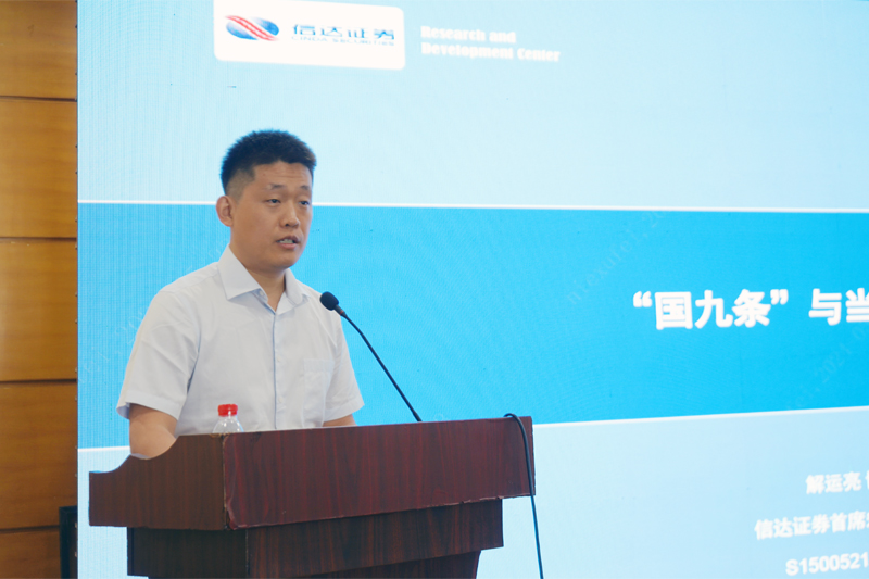 會議由煙臺財金集團(tuán)黨委委員、副總經(jīng)理修兆強主持。會上,中國信達(dá)山東分公司業(yè)務(wù)四處處長楊健、信達(dá)證券宏觀首席分析師解運亮先后分別以《不良資產(chǎn)視角下的上市公司并購重組》和《“國九條”與當(dāng)前經(jīng)濟(jì)形勢》為題進(jìn)行主題分享。